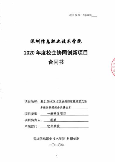 专业群科研团队紧跟国家智能网联汽车产业相关发展战略与规划,针对智能网联汽车中的关键技术,包括车路协同多媒体数据安全、车路协同网络安全、车路协同边缘计算开展基础研究与应用研究工作。科研团队与车路协同设备科技公司-深圳市金溢科技股份有限公司(股票代码:002869)开展深度校企合作与协同创新,立项校企协同创新项目“基于车路协同的智能安全感知系统”、“基于5G-V2X与区块链的智能网联汽车多媒体数据安全关键技术”。除此之外,与腾讯云计算深度合作,探索“人、车、路、云、网”协同应用技术。同时,海外高层次人才指导青年教师在校内发展5G-V2X相关研究,立项“基于区块链和DQN网络的高效自适应入侵检测系统在5G-V2X车载网中的信息安全关键技术研究”、“5G-V2X边缘存储优化研究”等项目。