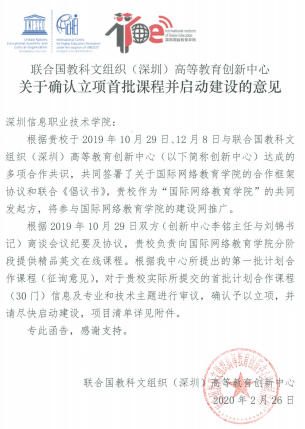 与联合国教科文组织高等教育创新中心达成的国际化课程建设协议