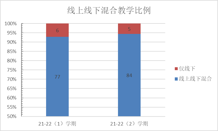 以信息化为手段,以云智结合新技术的教学为支点,建立 “线上”网络教学与“线下”传统面授教学相结合,通过构建情境、交互、体验、反思为一体的学习情景,以增强学生的自主学习意识,培养创新精神,提高实践能力,21-22学年专业群内专业课程实现线上线下混合式授课161门,占开课总数90%以上。
