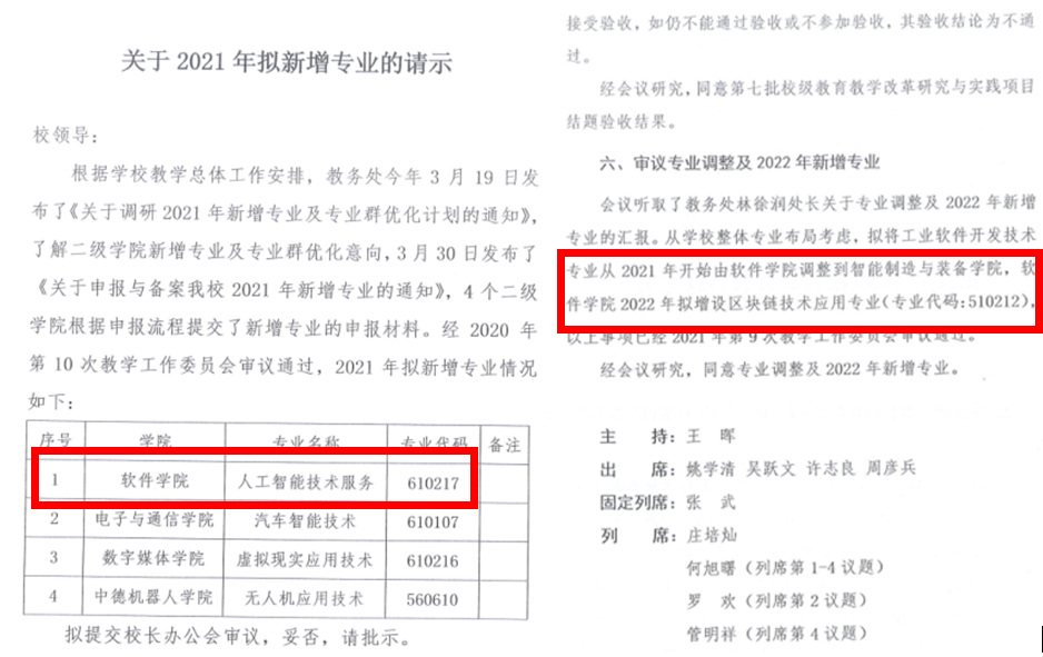 新增区块链技术和人工智能技术应用专业,解决数字化转型升级转型面临的高端技能人才不足痛点。区块链技术和人工智能技术是数字产业化与产业数字化的关键技术,是数字经济产业链上重要环节,在隐私安全保护、国家关键数据资源保护、数据安全预警和溯源、新时代数字经济技术更新、智慧决策、智能辅助中起着至关重要作用。国务院、广东省、深圳市十四五规划均将其列为数字经济重点产业。为解决数字经济产业背景下区块链技术和人工智能人才稀缺的难题,软件技术专业群设立两个新专业,有针对性的为地区企业解决人才难题。