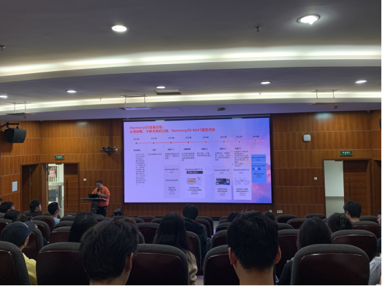 12月11日,计算机与软件学院举办了主题为“鸿蒙启航:拥抱智能互联新时代”的前沿技术宣讲活动,邀请华为开发者生态鸿蒙技术专家黄鑫担任主讲,学院全体移动互联专业学生参加。