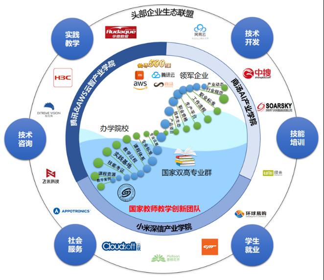 以软件为核心的云开发、人工智能等技术正赋能粤港澳大湾区实体经济高质量发展。软件技术专业群紧跟新技术发展趋势,助力产业更快更好发展,为中小企业软件产品“上云”提供技术和智力支持。专业群与公有云头部企业合作,依托产业学院高质量、高标准打造“深信云创中心”,提供软硬件世界领先、环境舒适的教学环境,为“腾飞班”卓越人才及全校学生培养提供保障,开展以亚马逊、腾讯等企业公有云为基础的“云智融合”软件开发、开展面向中小企业云开发和云计算从业人员的技术培训和职业资格认证服务、开展能够掌握云开发核心技能、胜任云开发相关工作岗位的社会培训、开展面向不同学情在校学生的分层次教学。